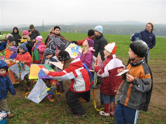 Páteční odpoledne 28. 10. 2011 se u vodárny konala Novoveská drakiáda. Počasí nám přálo. Nepršelo, zima byla tak akorát, jen foukat mohlo možná trochu víc. Do soutěže se přihlásilo celkem 29 draků. Pro letošní rok byly vyhlášeny celkem tři soutěžní kategorie: o nejmenšího draka, o největšího draka a pro odvážné a příznivce adrenalinu o draka, který nejdříve vzlétne při hromadném startu. Výsledky byly překvapující. V soutěži o nejmenšího draka zvítězil Péťa Dvořák. Kategorie největší drak měla vítěze dva. Matěj Rynda a Terezka Fišerová létali s draky měřícími úctyhodných 95 cm. Poslední soutěž s hromadným startem měla trochu dramatický úspěch, protože v průběhu odpoledne foukat téměř přestalo. Za velkého usílí všech soutěžících nakonec vzlétli draci všichni. Vítězů jsme tedy měli hned sedmnáct. Všichni účastníci drakiády byli odměněni sladkostmi. Vítězové soutěží o největšího a nejmenšího draka si odnesli dorty a účastníci hromadné soutěže dostali roztomilé dráčky z mandlového těsta, které nám věnovala paní Dana Krupauerová. Při běhání za draky všem vyhládlo. Opečené buřtíky ale hlad spolehlivě zahnaly. Na zahřátí byl k dispozici teplý čaj a pro dospělé i něco ostřejšího. Odpoledne se vydařilo. Příští rok bude jubilejní, čeká nás drakiáda v pořadí pátá. Už dopředu jste předem zváni.